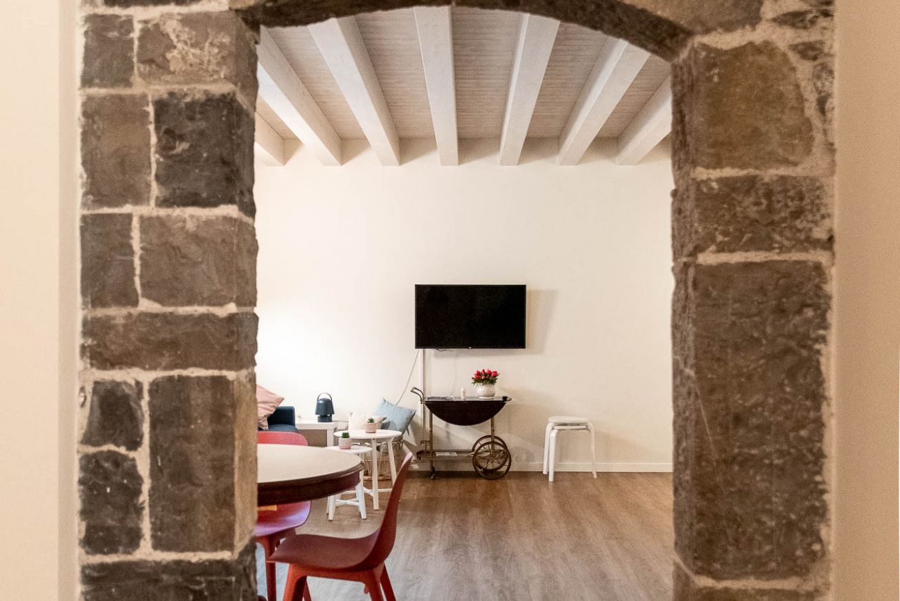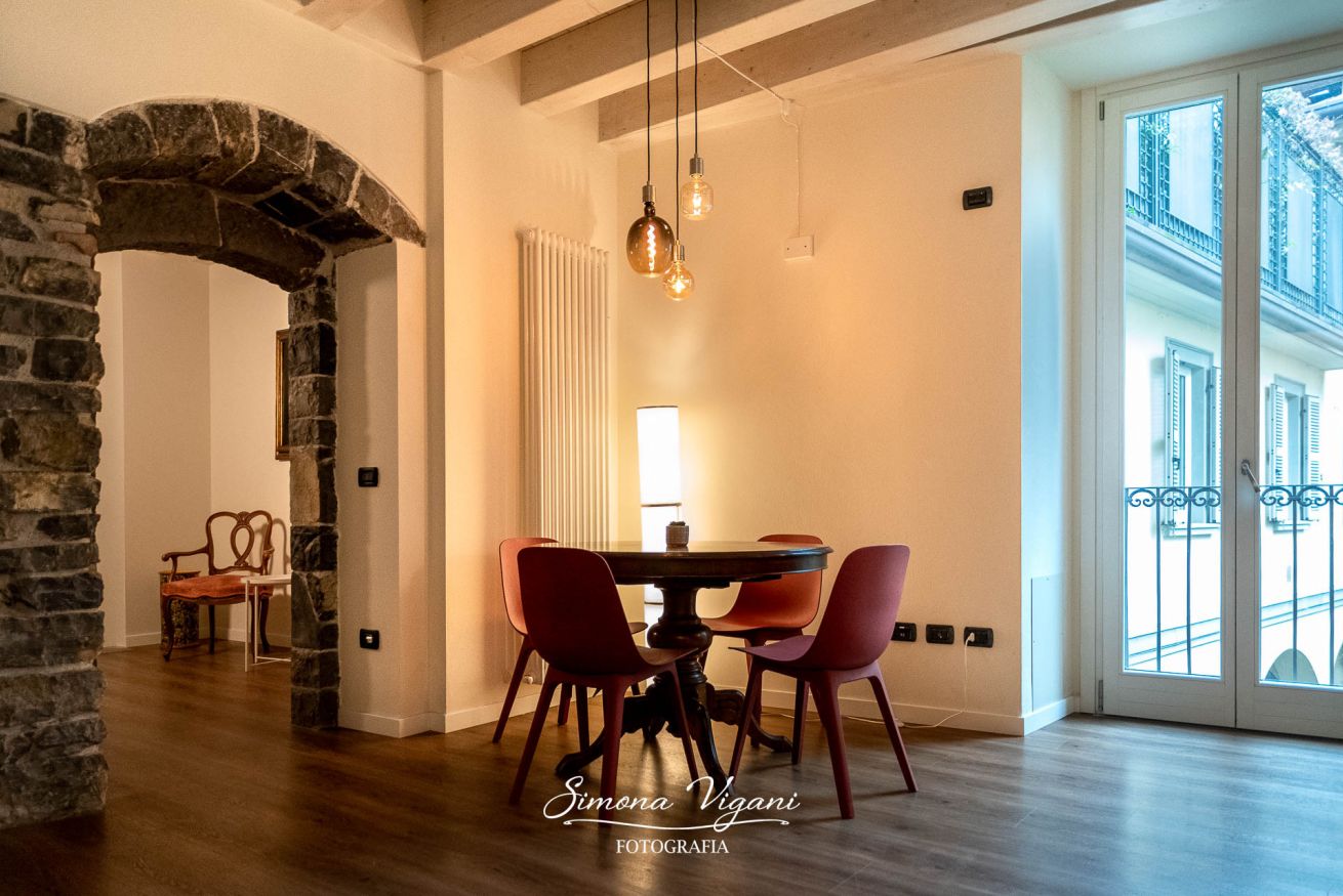 Elegant apartment in an ancient building a stone's throw from the lakefront and the historic center of Lovere. The two-room apartment has undergone a new renovation which has enhanced the historical features of the building, such as arches and exposed stones. It consists of a double bedroom, large living room with full kitchen and sofa bed, hallway, bathroom with shower. Quiet and ideal location for reaching various services, bars, restaurants, the lakefront and the historic center.
